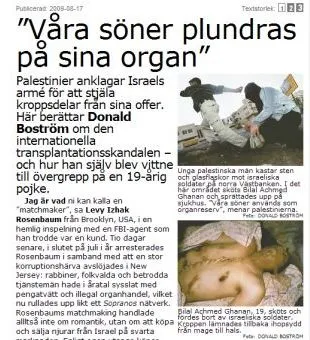 Swedish newspaper Aftonbladet’s story accusing the IDF of harvesting Palestinian organs caused an uproar. Donald Bostrom, the author of the offensive piece, duly demonstrated his utter lack of any basic journalistic standards when he said: “But whether it’s true or not – I have no idea, I have no clue.” On top of this, the story was further undermined as one of the Palestinian families interviewed said they never told any reporter that their son was missing organs.