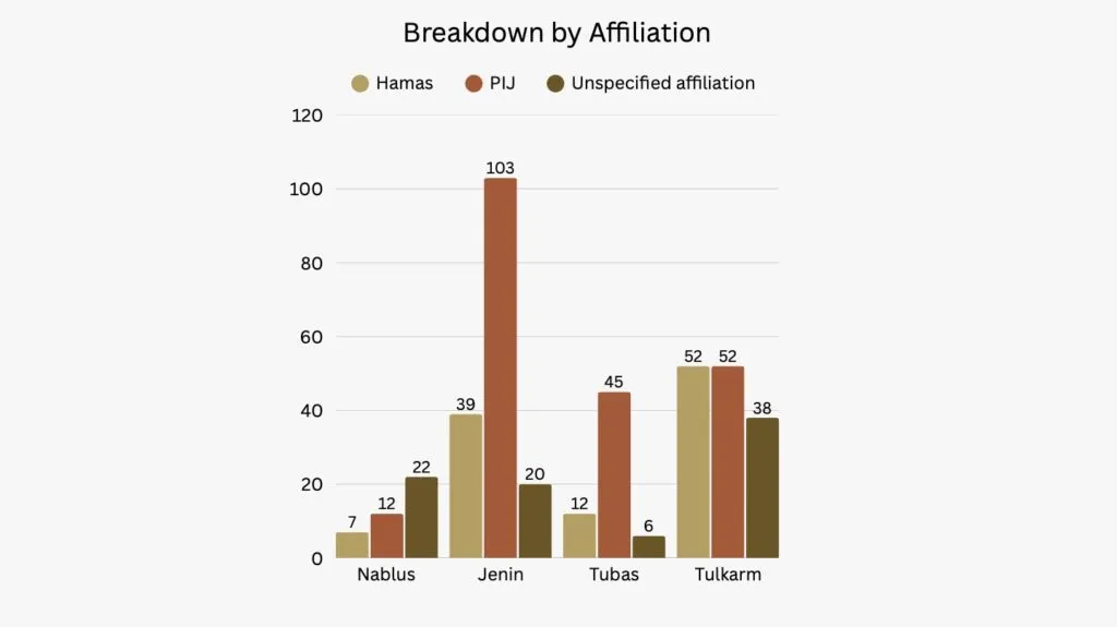 Notably, B’Tselem’s data indicates a correlation between districts with the highest number of fatalities and a high concentration of terrorist activity and affiliations. The areas most frequently referred to in newspapers as being the “deadliest” are often the same areas where terrorist organizations such as Hamas and Islamic Jihad maintain a strong operational presence. This is especially true for Jenin, which both B’Tselem and the OCHA cite as having the highest rates of Palestinian deaths. Other cities with high death rates include Tulkarm, Nablus, and Tubas, all of which the IDF has operated in to thwart terrorism threats.