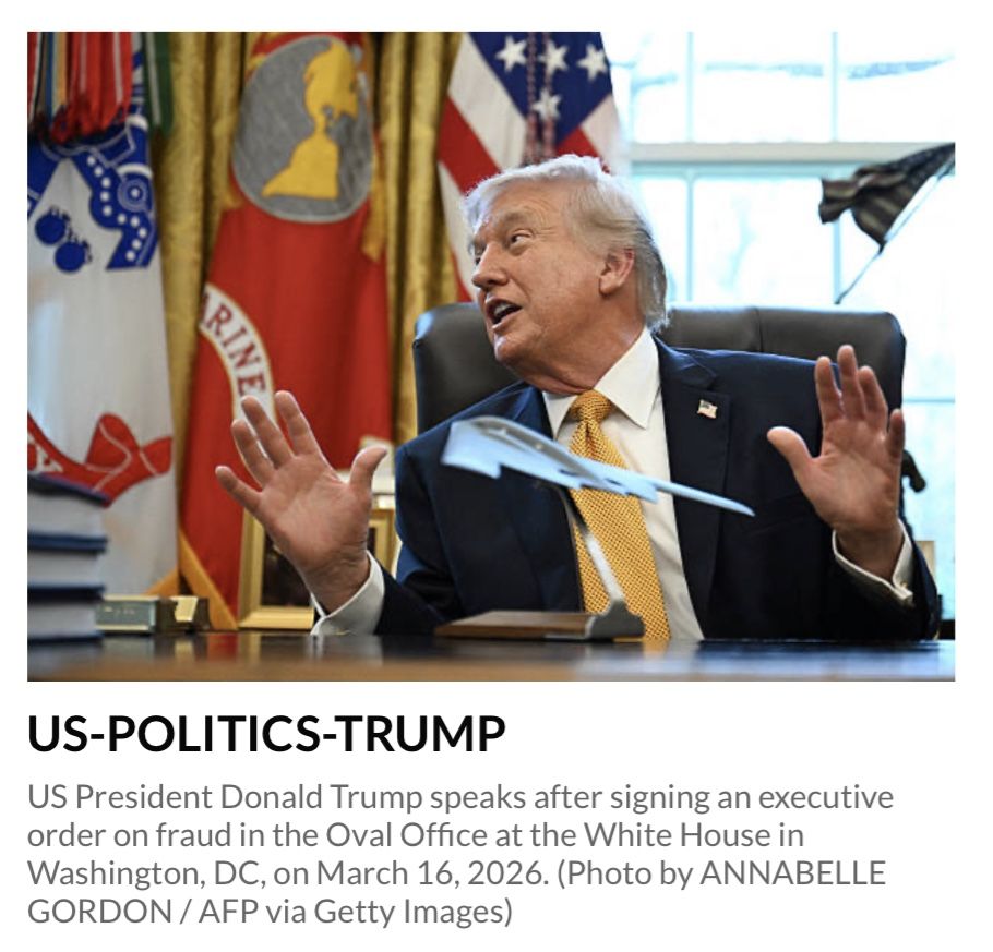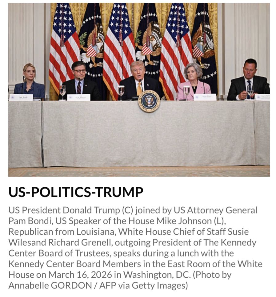 To illustrate the claim, the article used a photograph showing Trump looking downward while shaking hands during a formal meeting in the East Room.