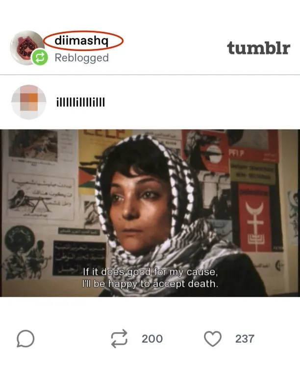 - Duwaji posted imagery of infamous terrorist airplane hijacker Leila Khaled to her Tumblr in 2017
