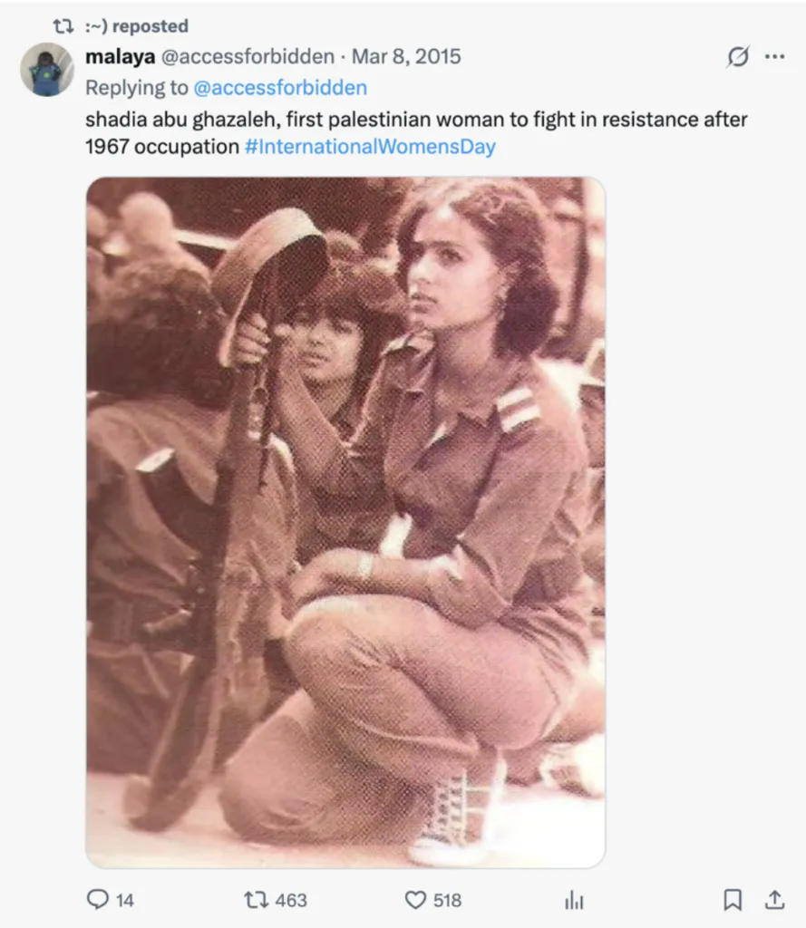 - The same year, she engaged with content praising PFLP terrorist Shadia Abu Ghazaleh