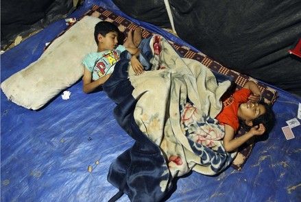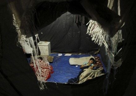 Caption: Palestinian boys Ahmed (R) and Mohammed (L) Al-Qarawi sleep inside a tent in the northern Gaza Strip late June 8, 2010. The tent was erected after their family’s house was destroyed during Israel’s three-week offensive in Gaza last year. Picture taken June 8, 2010