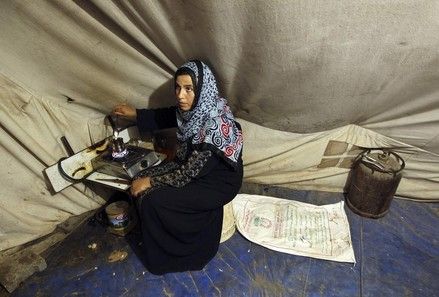 Caption: Palestinians stand inside a tent erected after their house was destroyed during Israel’s three-week offensive in Gaza during 2008-2009, in the northern Gaza Strip June 8, 2010.