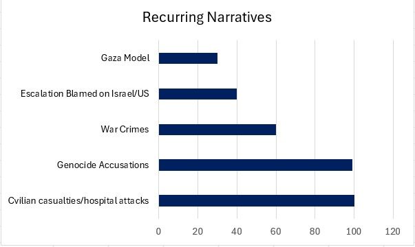 - HonestReporting.ai Labs analyzed the pattern of narrative repetition, gathering more than 550 alerts that used similar phrasing in the Israel-Hamas war and Israel-Iran war.