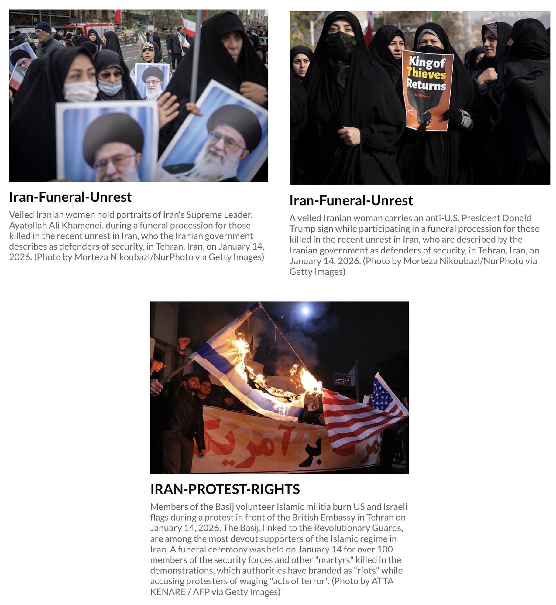 Gaza is rendered omnipresent through imagery that arrives daily, framed urgently, and circulated without hesitation. Iran, by contrast, is reduced to statements, denials, and carefully managed official visuals, even as repression unfolds at scale. This disparity cannot be explained by access, safety, or verification alone. It reflects a deeper editorial pattern about what kinds of suffering are considered legible, mobilizing, and worth sustained attention.