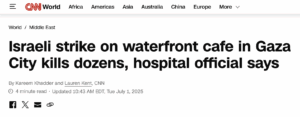 CNN quoted “hospital officials” who claimed “dozens” were killed, while also noting that the cafe was popular with journalists and “remote workers” in Gaza.