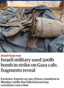 The Guardian went a step further, suggesting the strike may have been a war crime. It cited unnamed “experts” who claimed the IDF used a 500lb bomb, supposedly based on “fragments” found at the scene.