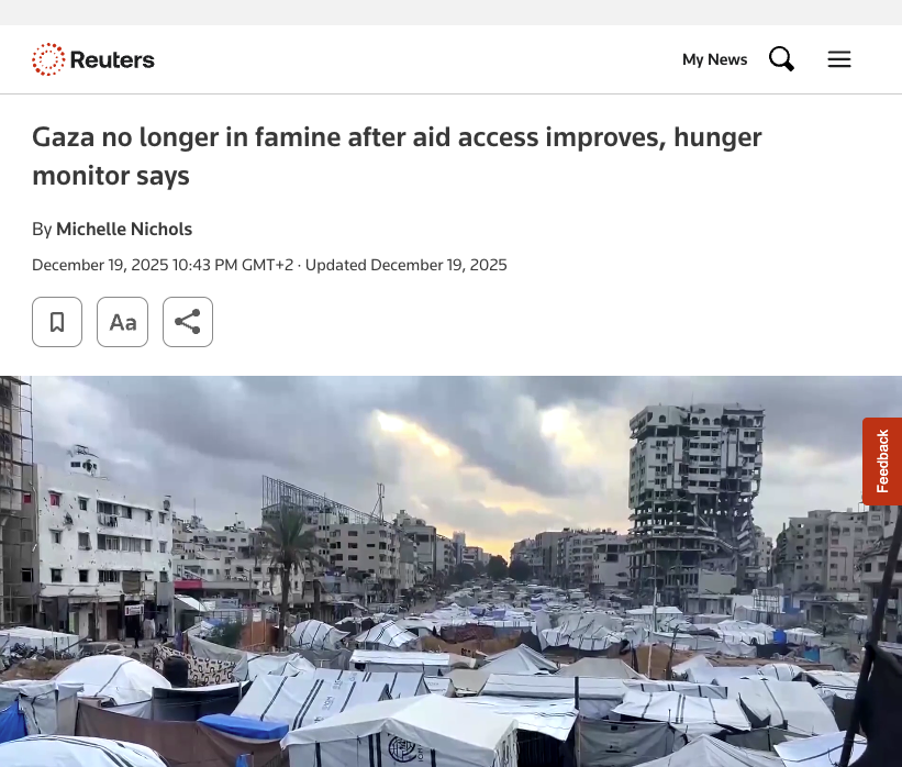 Only months earlier, these same institutions helped cement a very different narrative. In late July 2025, UN agencies issued a high-profile warning that key indicators in Gaza exceeded famine thresholds, citing IPC data and describing hundreds of thousands facing famine-like conditions. The IPC alert itself stated that famine thresholds had been reached for food consumption in most of Gaza and for acute malnutrition in Gaza City. In August 2025, the Food and Agriculture Organization of the United Nations (FAO) announced famine was confirmed for the first time in Gaza, again anchored to IPC assessments.