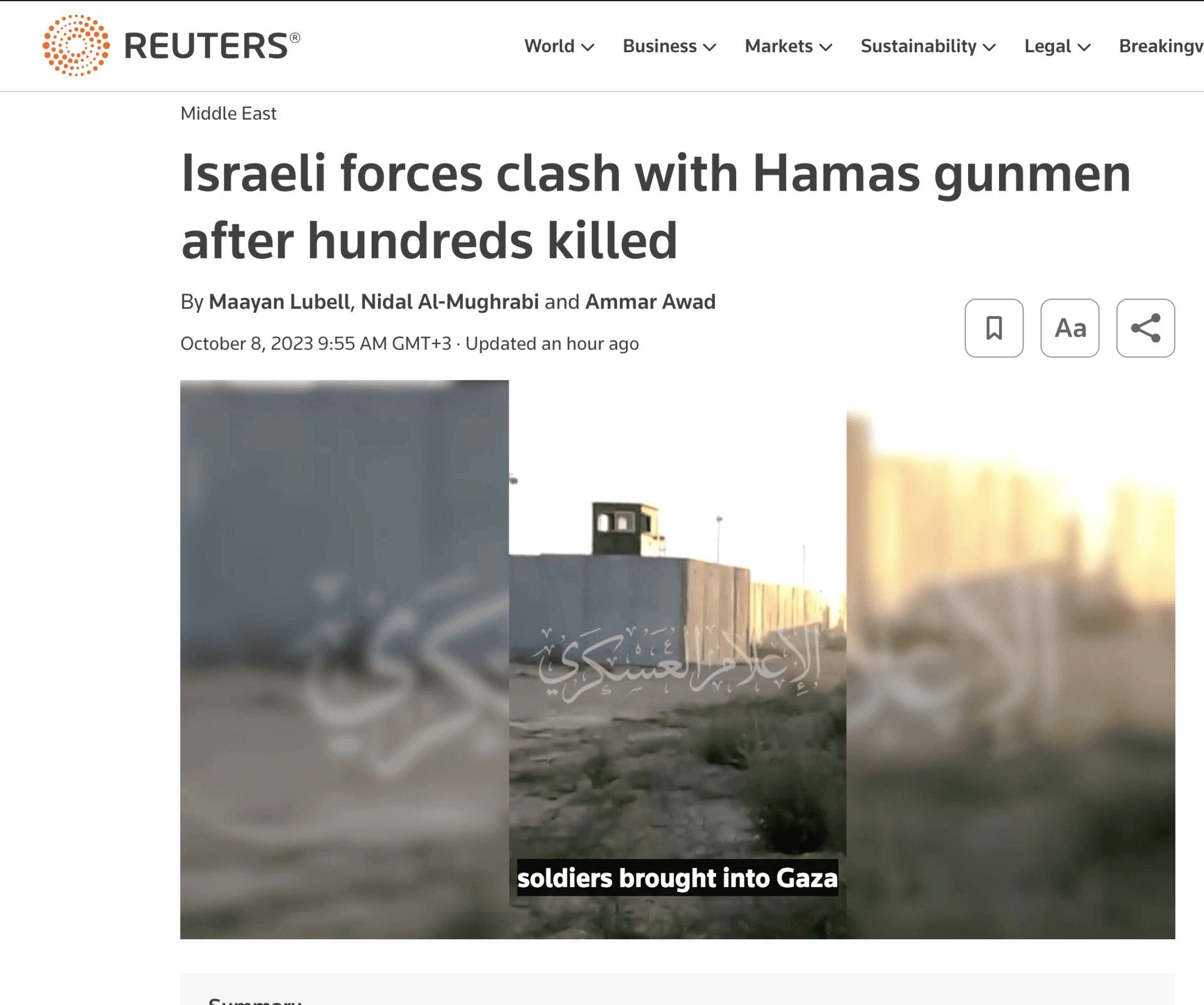 As the horrific dimensions of Hamas’ gruesome attack on Israeli civilians yesterday become clearer, it seems like news agencies’ reports on the shocking event are becoming blurrier.